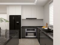 ミニ黒漆塗り木製小型アイランドスマートフルモジュールエコフレンドリーモダンキッチン
